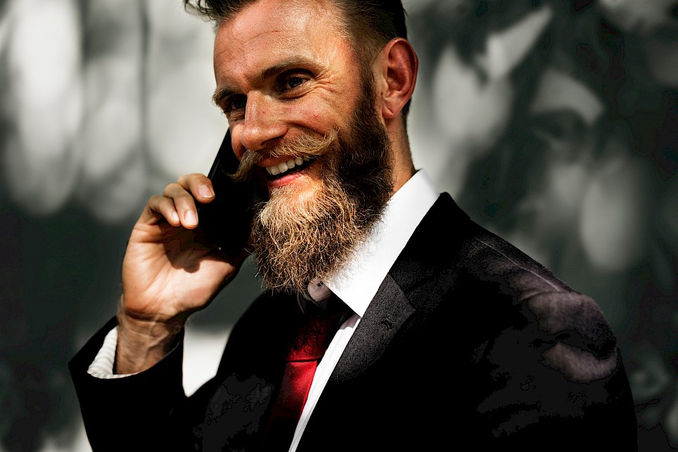 Damit der Bart glänzt und beruhigt wird, kann man eine mittelgrosse Rundbürste benutzen. Mit drehender Rundbürste die Barthaare in Form bringen. Dies gelingt am besten, wenn der Bart schon trocken ist. Anschliessend den Bartbalsam oder das Bartserum in den Händen verreiben und in den Bart kneten. Fertig!