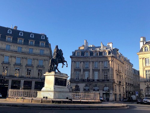 09.00 Uhr An der schönen Place des Victoires findet unser erster Termin heute statt, im Showroom von Maria Calderara, über den Dächern von Paris.