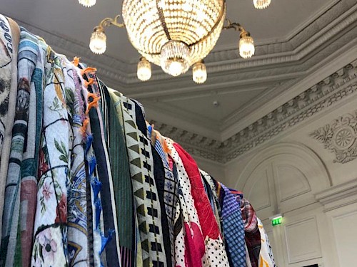 Nach einem Fussmarsch zum Palais de la Bourse treffen wir um 11.15 Uhr bei Faliero Sarti ein. Faliero Sarti gehört zu den klassischen Schmuckstücken der europäischen Mode. Ein Sarti Schal um den Hals drappiert, ersetzt auf kunstvolle Art das Collier. Sarti ist Fashion pur und wird in New York, London, Tokio ebenso gesichtet wie in Paris. Stylisten und Fashionfans haben Faliero Sarti schon lange für sich entdeckt.
