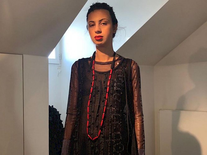 Maria Calderara designt Prêt-à-Porter und Schmuck, passend zu allen ihren Kreationen.