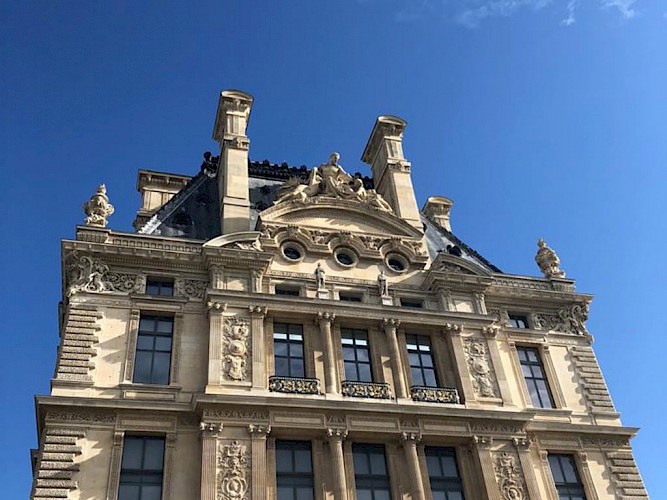 14.30 Uhr Beim Spaziergang durch die Jardins de Palais Royal in Richtung Louvre lassen wir die historischen Gebäude auf uns wirken.