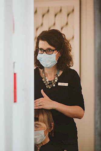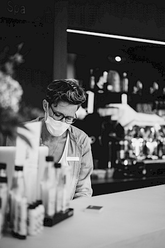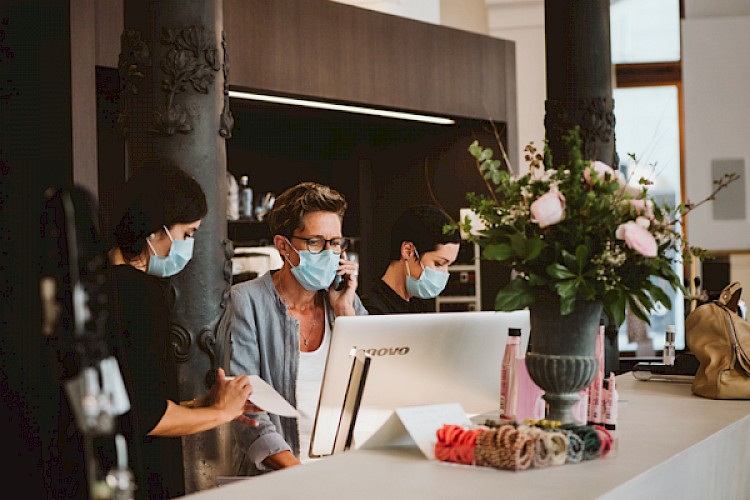 Was mir aber besonders aufgefallen ist: In der Zeit, während alles liebevoll für den Kunden vorbereitet wird, werden viele noch so kleine und schöne Gesten und Dienstleistungen aus Sicherheitsgründen zurzeit nicht angeboten. Angefangen vom Aufhängen der Jacke in der Garderobe, dem Servieren von Getränken oder das Anbieten von Zeitschriften. Diese kleinen Wertschätzungen fehlen bzw. sind zurzeit untersagt.