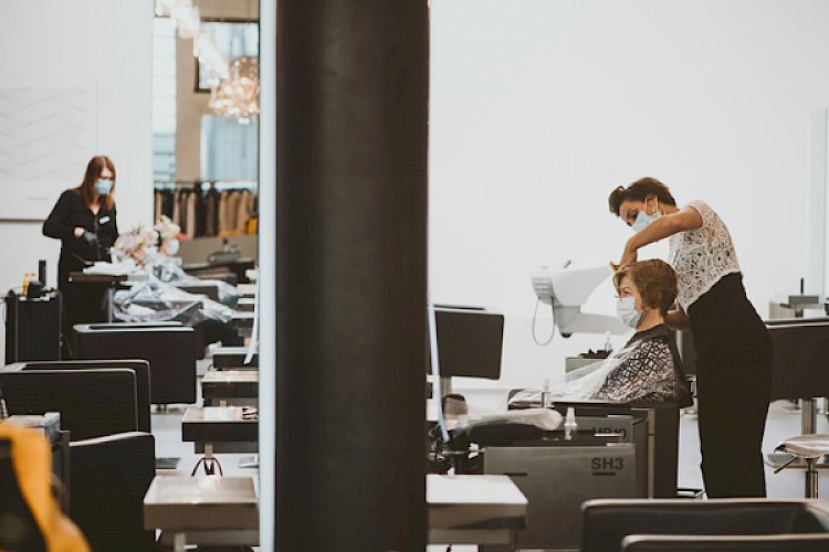 Die Kunden waren sehr entspannt und das Team fröhlich am Arbeiten. Das Tragen von Masken und Handschuhen sah trotzdem für mich sehr befremdlich aus. Wo man sonst die Mimik während einem Gespräch sieht, ist jetzt diese Maske. Was aber die Maske den Coiffeusen und Kunden nicht nehmen konnte, waren die strahlenden Augen, die gut zu sehen waren, während das Resultat mit viel Freude im Spiegel betrachtet wurde.