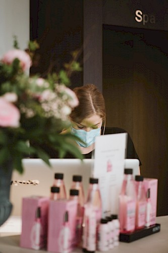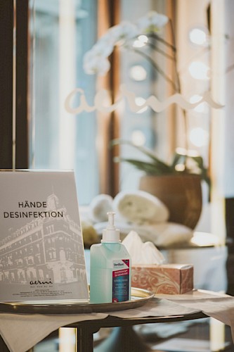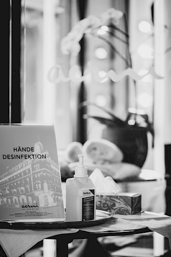 Im Eingangsbereich steht vorbildlich ein Hand-Desinfektionsmittel bereit und am Empfang wird man wie gewohnt herzlich empfangen.