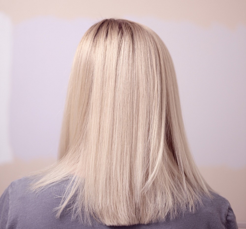 Nun folgt die Shot Phix Phase. Die Lotion sprühen wir regelmässig auf alle Haare auf und lassen sie kurz einwirken. Anschliessend waschen wir alles sorgfältig aus.